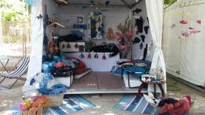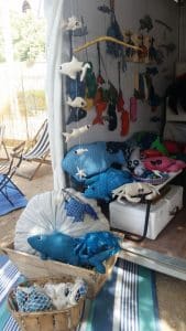 En attendant mes remerciements à Aude Fabre pour sa précieuse aide sur le Salon Côté Sud et à Sophie Spiteri, la photographe du Salon Vivre Côté Sud qui m’a mise en boîte avec mon coussin XL ainsi que Monsieur crabe pouf dans la jolie installation de l’accueuil du Salon.