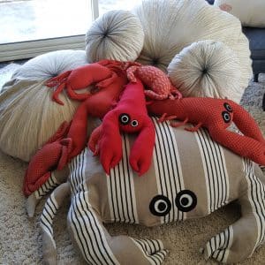 Du petit repose-tête crabe aux coussins bateaux, venez découvrir mon fantastique monde marin, et mon bestiaire aquatique: