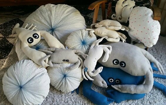 coussin oursin, pouf déhoussable, coussin crabe, coussin homard
