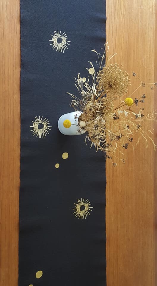 Mariage harmonieux entre sobriété et éclat, le contraste du noir intense et du fil doré crée une ambiance à la fois contemporaine et intemporelle. Il invite le regard, rehausse une vaisselle simple et transforme chaque repas en moment précieux.