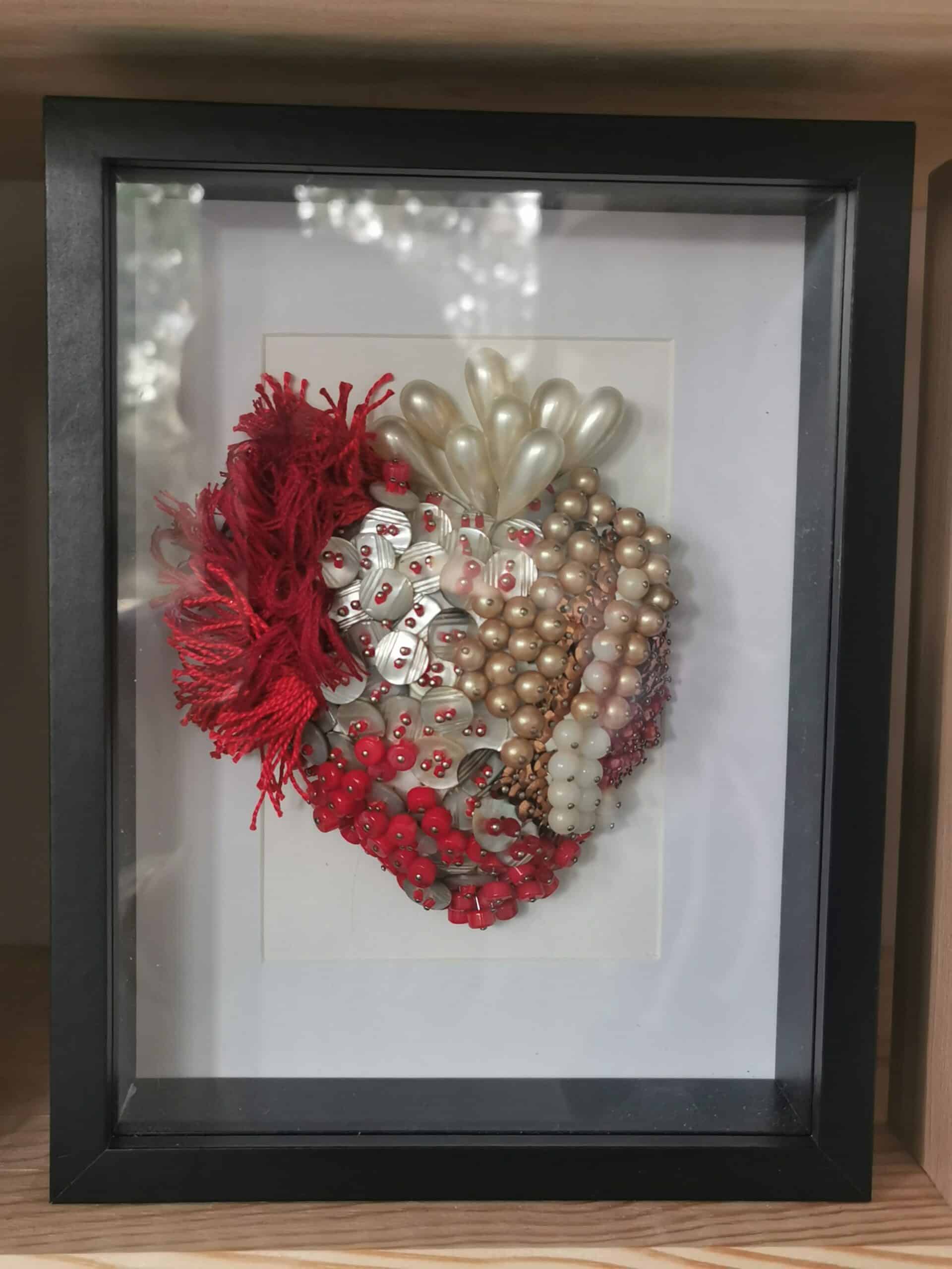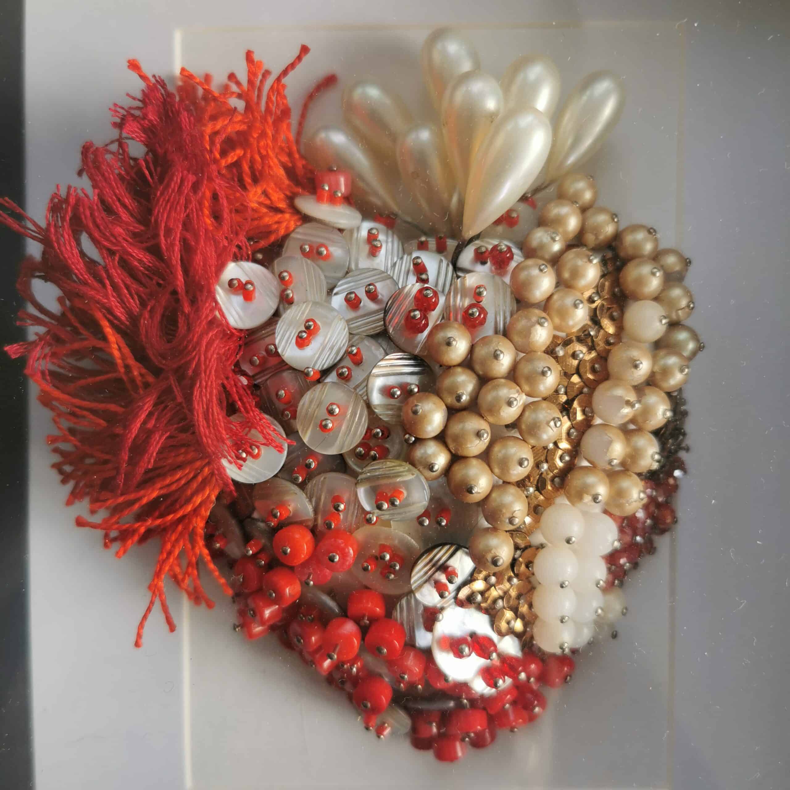 Cœur ex-voto rouge nacre et corail.