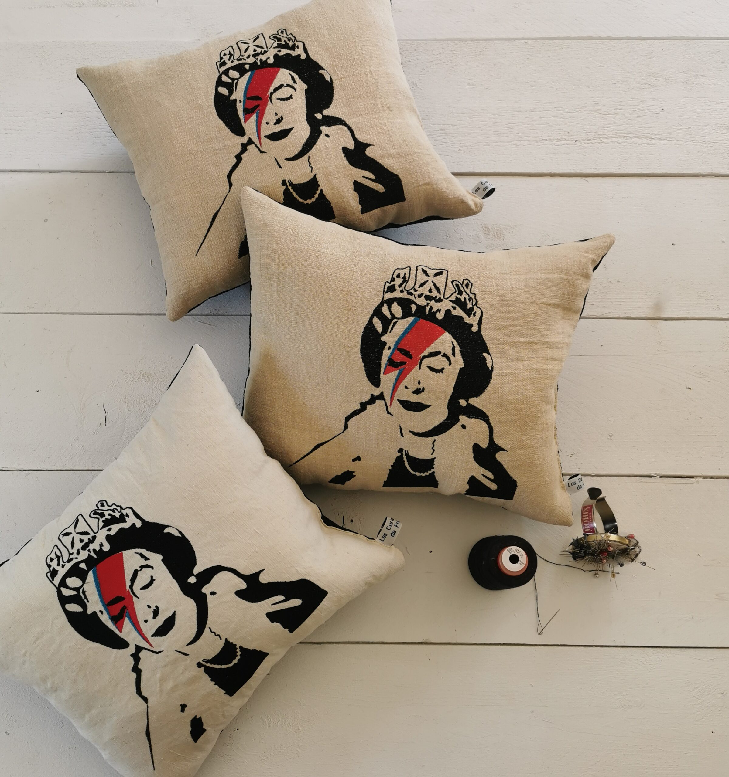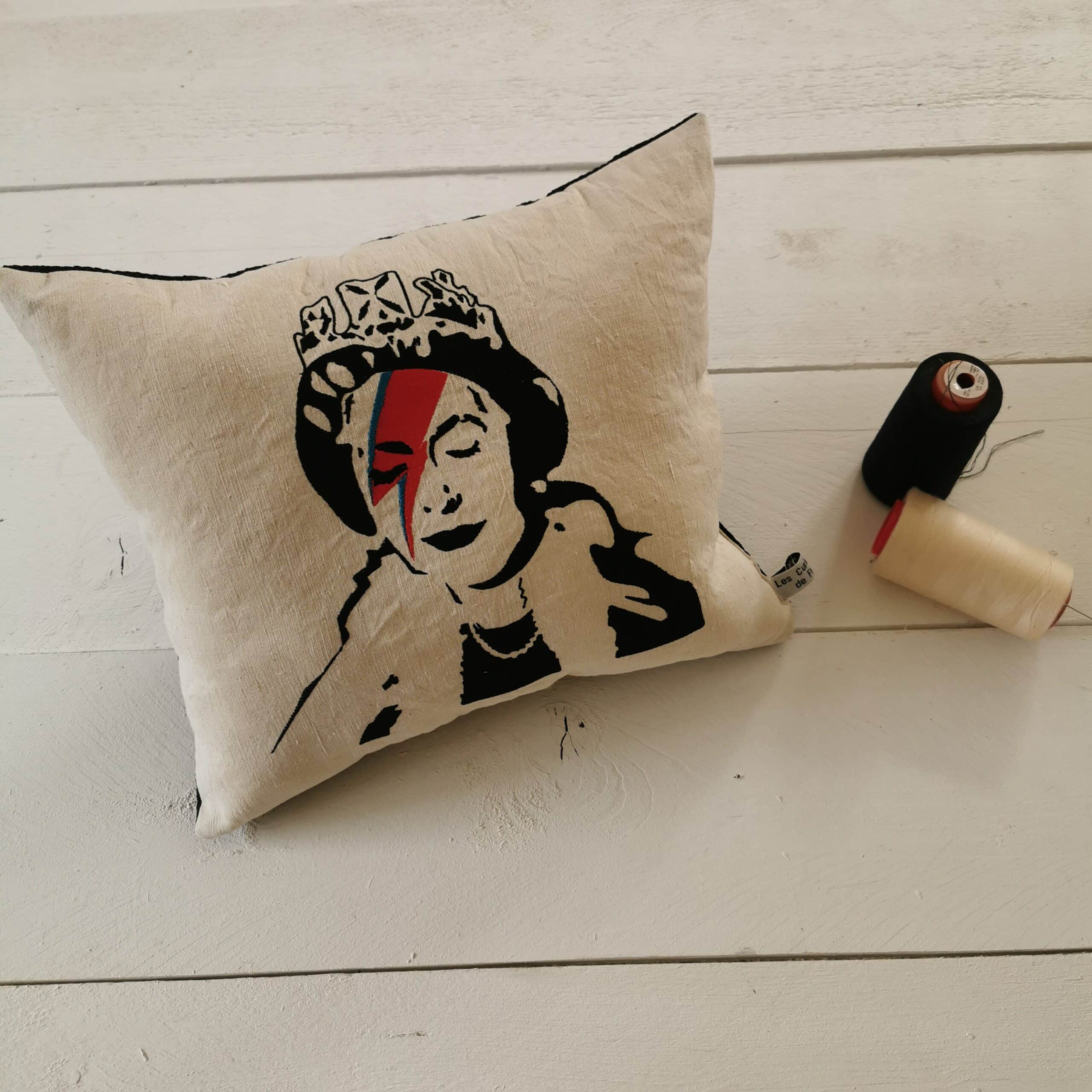 Coussin brodé Queen Elizabeth.