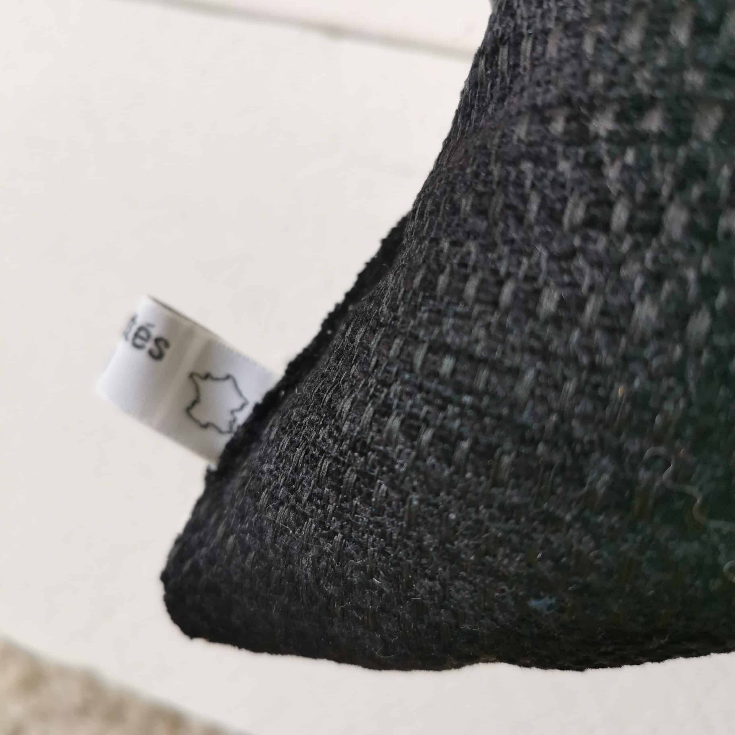 Coussin en chanvre / métis naturel recto, verso noir tissé lin mélangé.