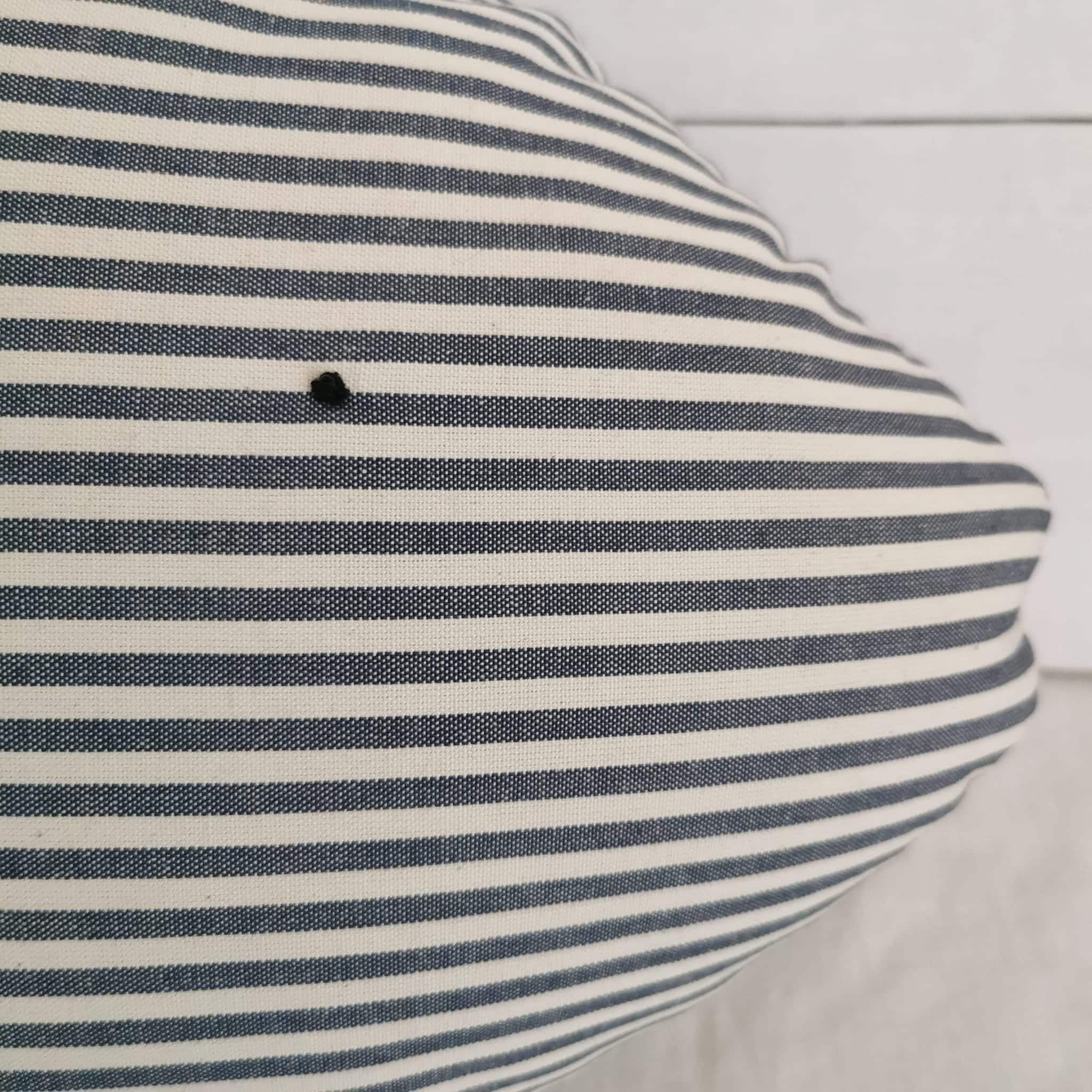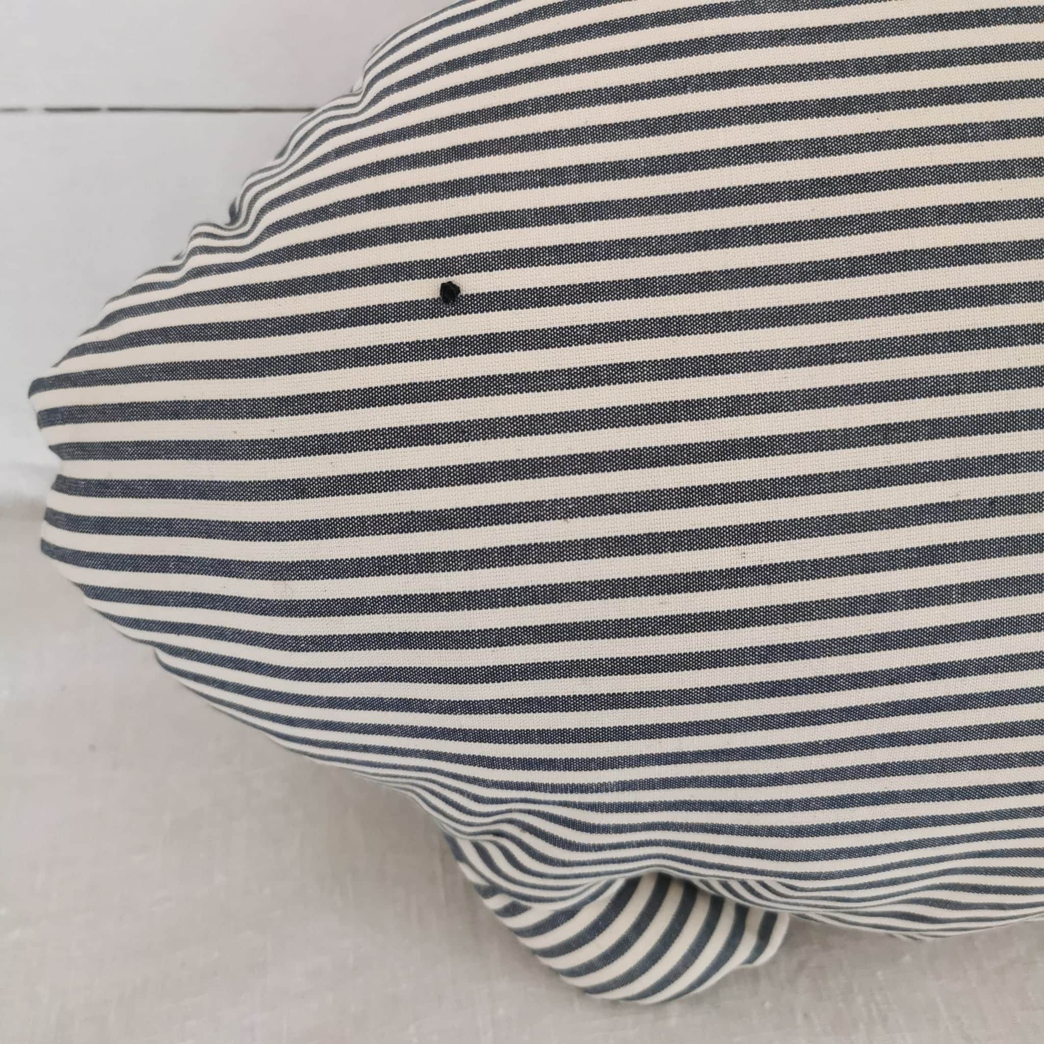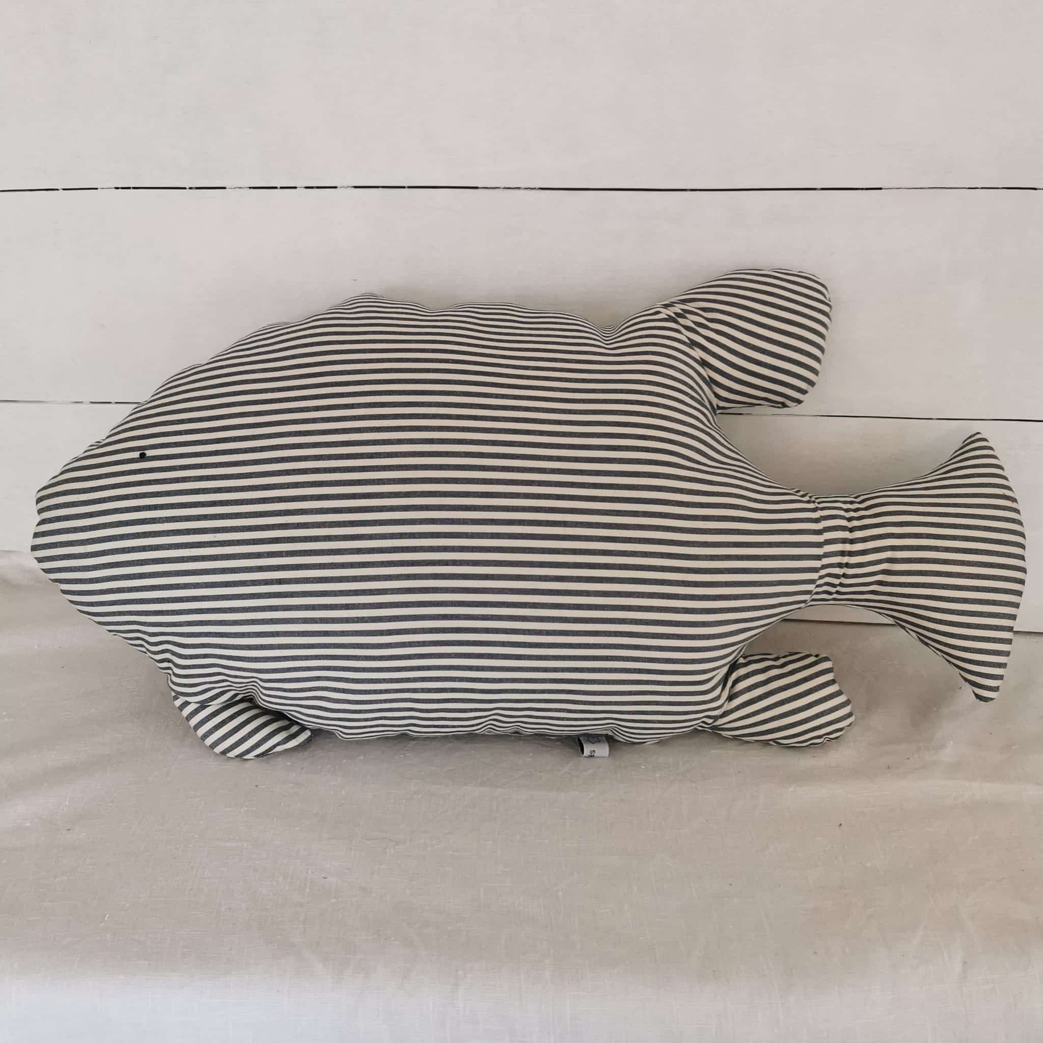 Coussin poisson xl à rayures bleues et écrues.