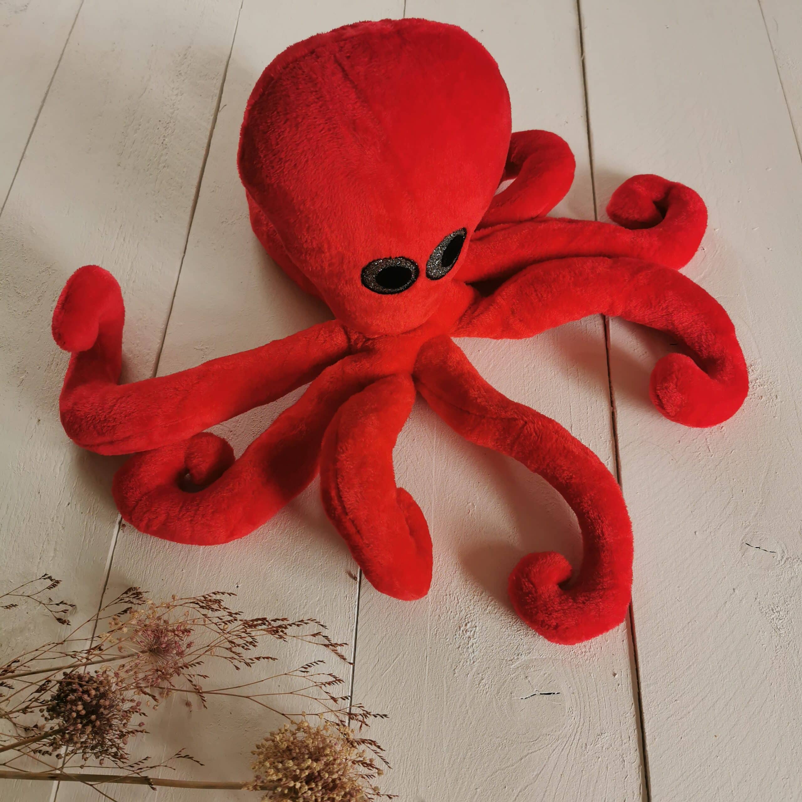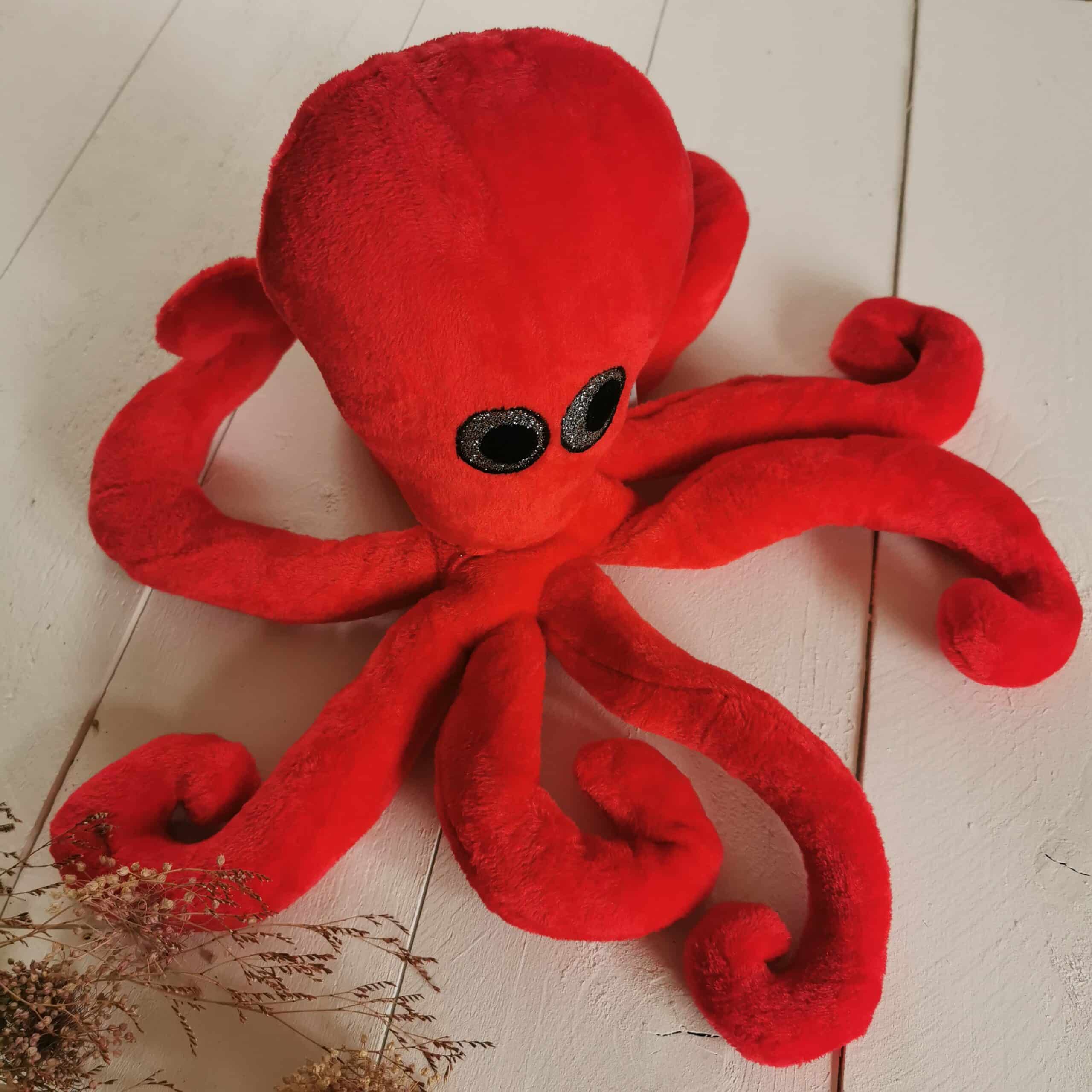 Impossible de lui résister ! Ce joyeux habitant des profondeurs arbore huit tentacules pleins de souplesse et une tête dodue qui appelle les câlins. Tout en rondeur, ce compagnon textile séduit par son allure espiègle et son regard scintillant, rehaussé de reflets argentés.