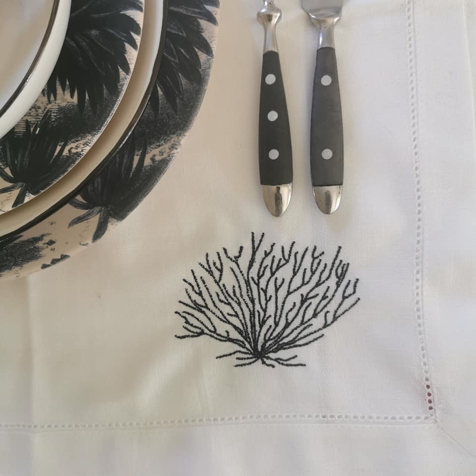 Soyez le premier à laisser votre avis sur “Lot de 6 serviettes lin et coton brodées corail noir.”