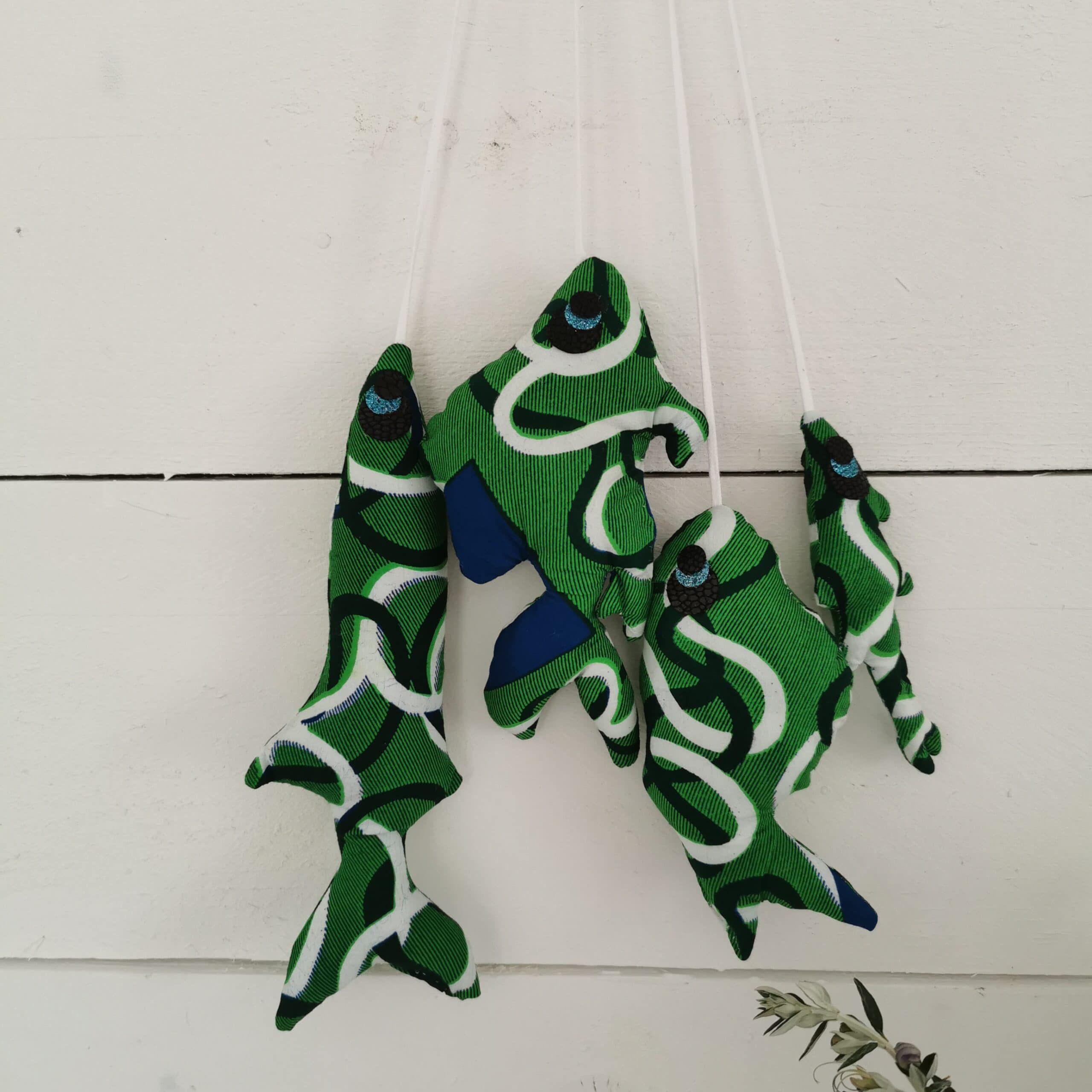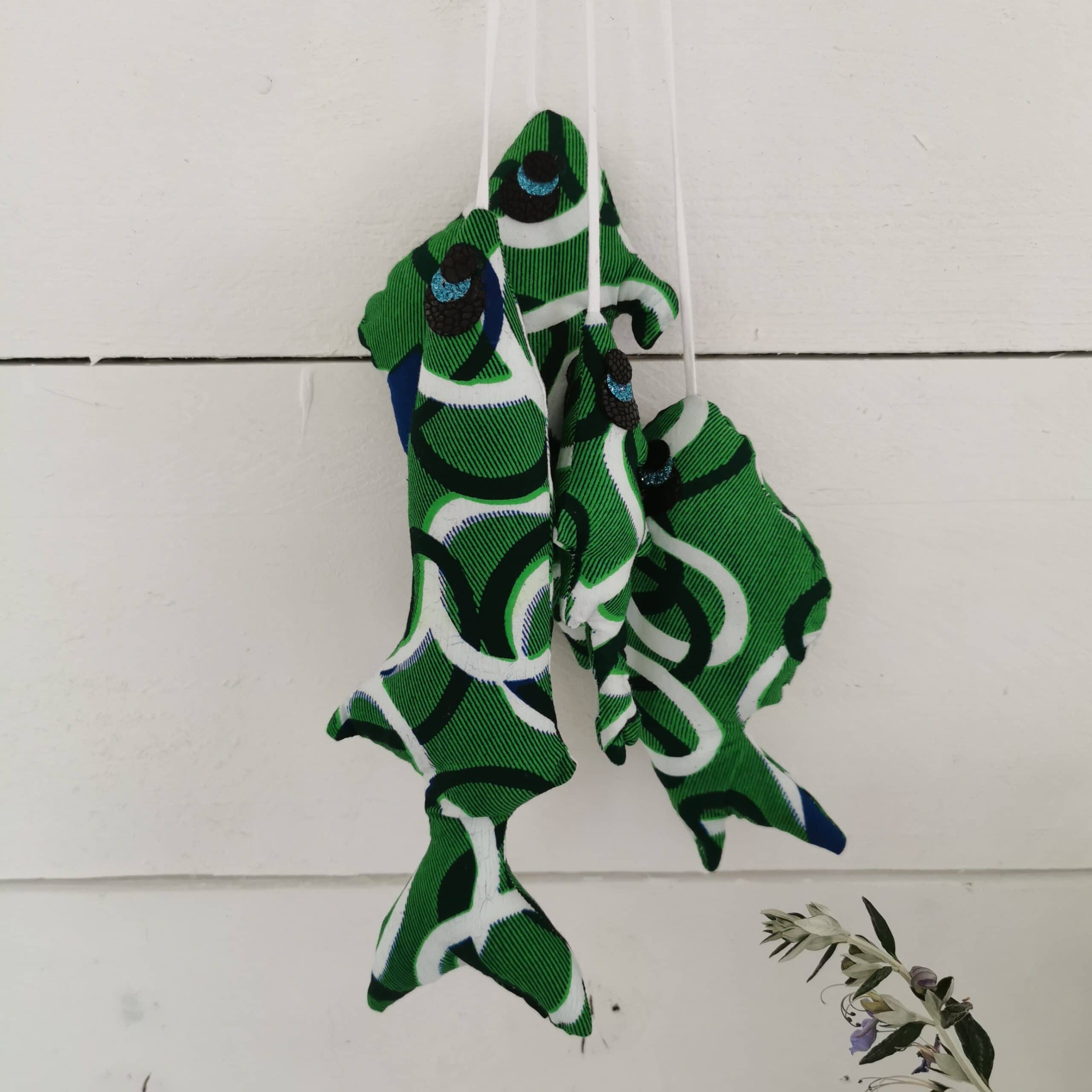Poissons reliés par passementerie en coton