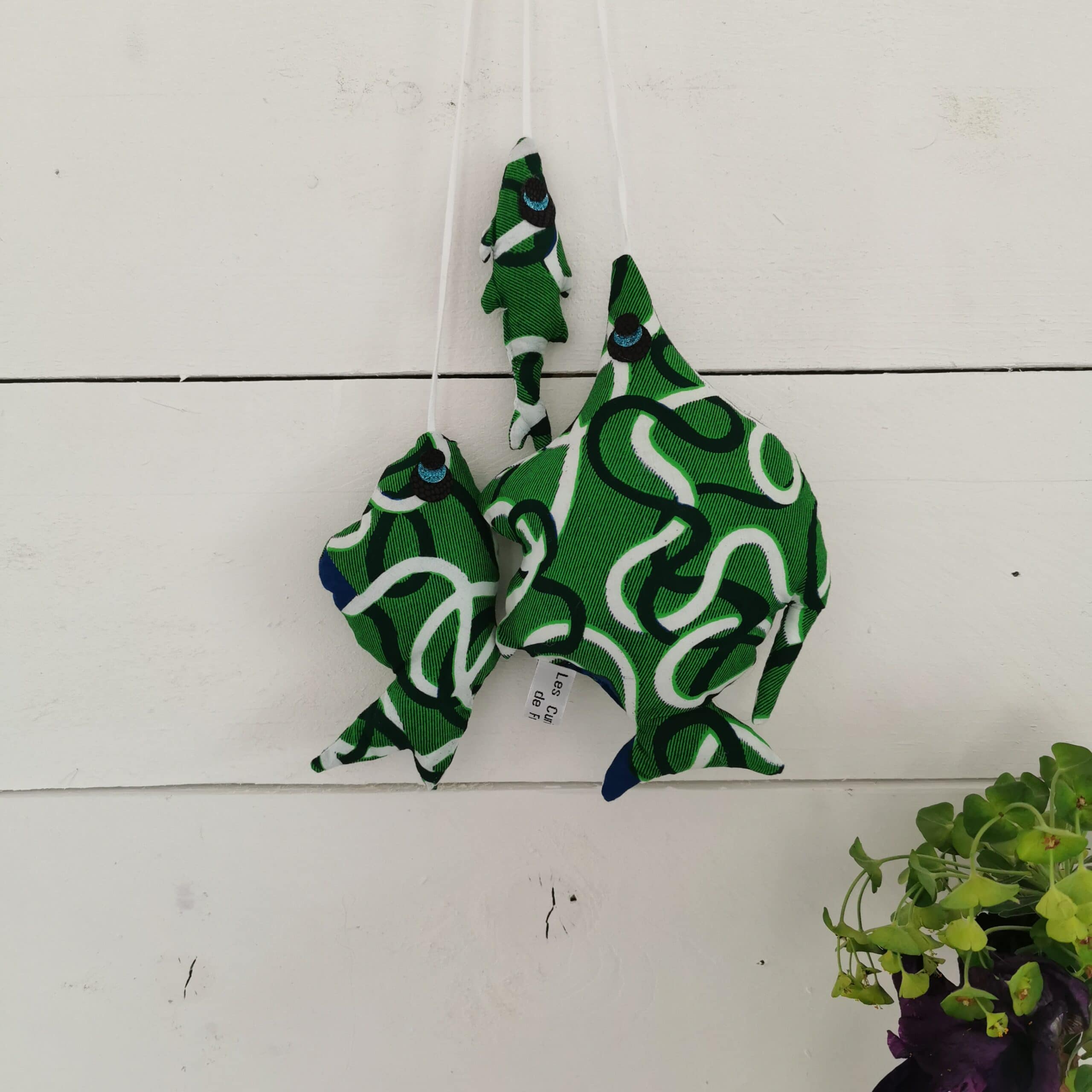 Pêche décorative à suspendre de 3 poissons en wax.