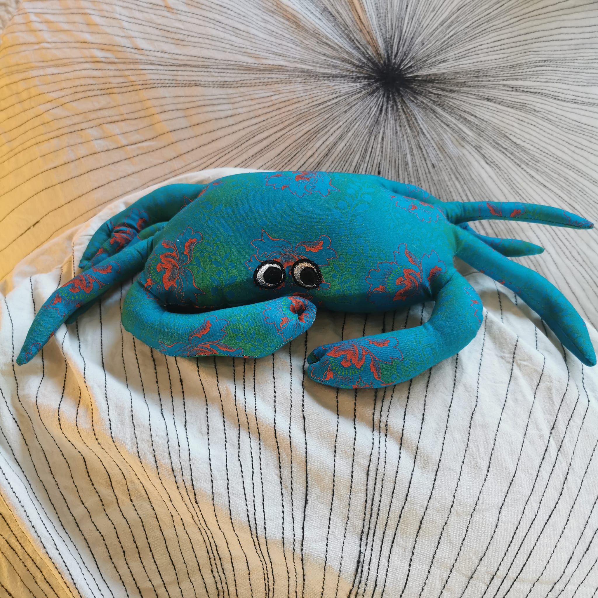 Petit coussin crabe schwe schwe turquoise fleurs
