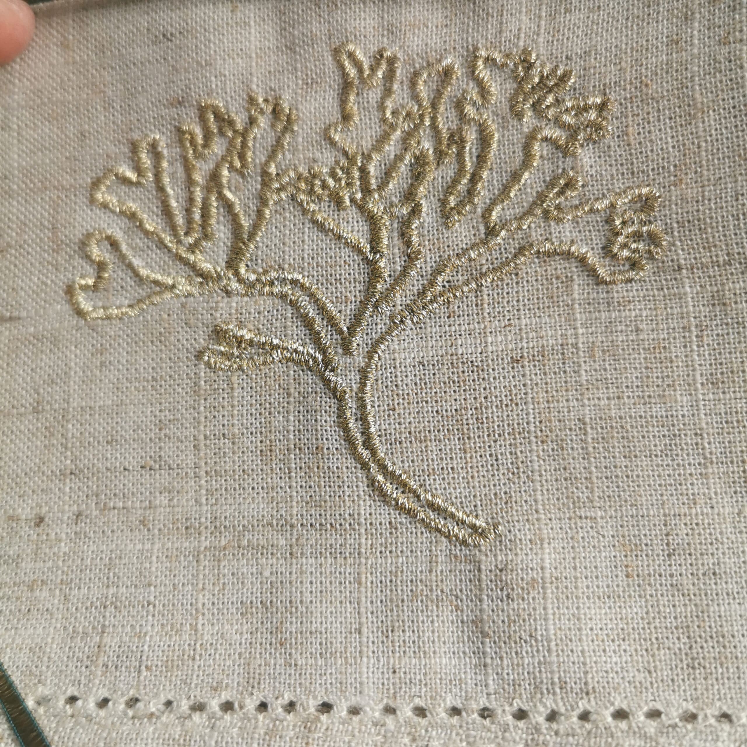 Soyez le premier à laisser votre avis sur “Set de table lin et coton naturel, broderies algue or”